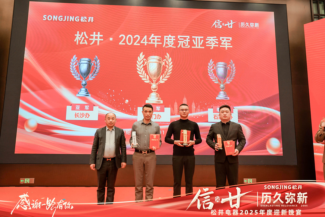 歲月不居,天道酬勤;耕耘收獲,同心致遠。晚宴上,松井為優(yōu)秀的團隊成員,頒發(fā)了松井2024年度冠亞季軍獎、最佳團隊管理獎、達峰獎、十載同舟獎、優(yōu)秀辦事處獎、優(yōu)秀區(qū)域經(jīng)理獎等諸多年度獎項,對大家在2024年的拼搏和努力作出鼓勵和表彰!