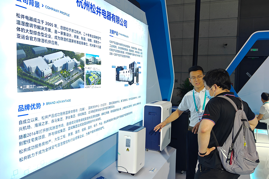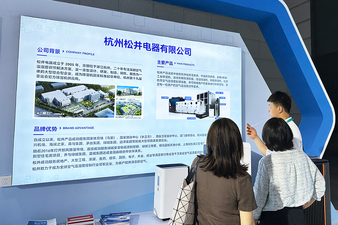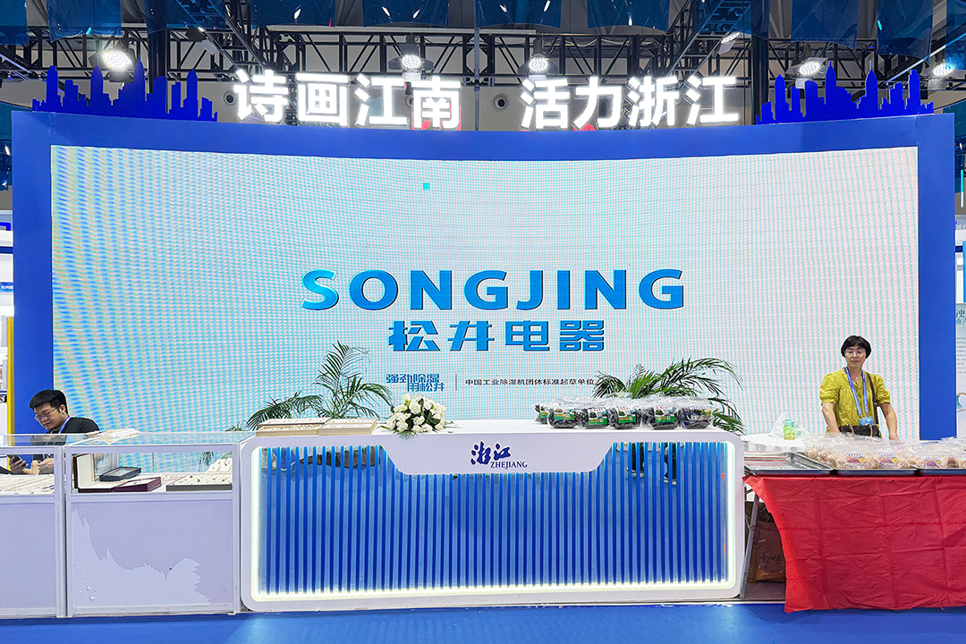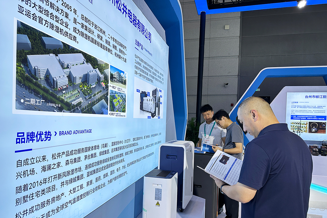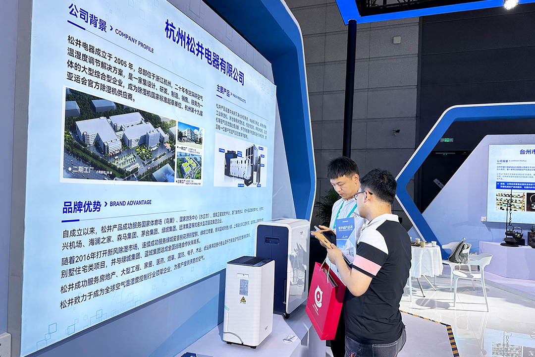 在浙江省代表團(tuán)展示專(zhuān)區(qū),松井外形靚麗的家用除濕機(jī)系列、智能防霾新風(fēng)除濕系統(tǒng)、大師系列除濕機(jī)等代表性空氣除濕/新風(fēng)/凈化產(chǎn)品,成為省代表團(tuán)眾多精彩展品的其中一道靚麗風(fēng)景線(xiàn),為中外企業(yè)及友人展現(xiàn)卓越的空氣溫濕度調(diào)控方案,滿(mǎn)足居家/企業(yè)/公共場(chǎng)所等各種環(huán)境空氣溫濕度調(diào)控需求,展現(xiàn)除濕科技的魅力。
