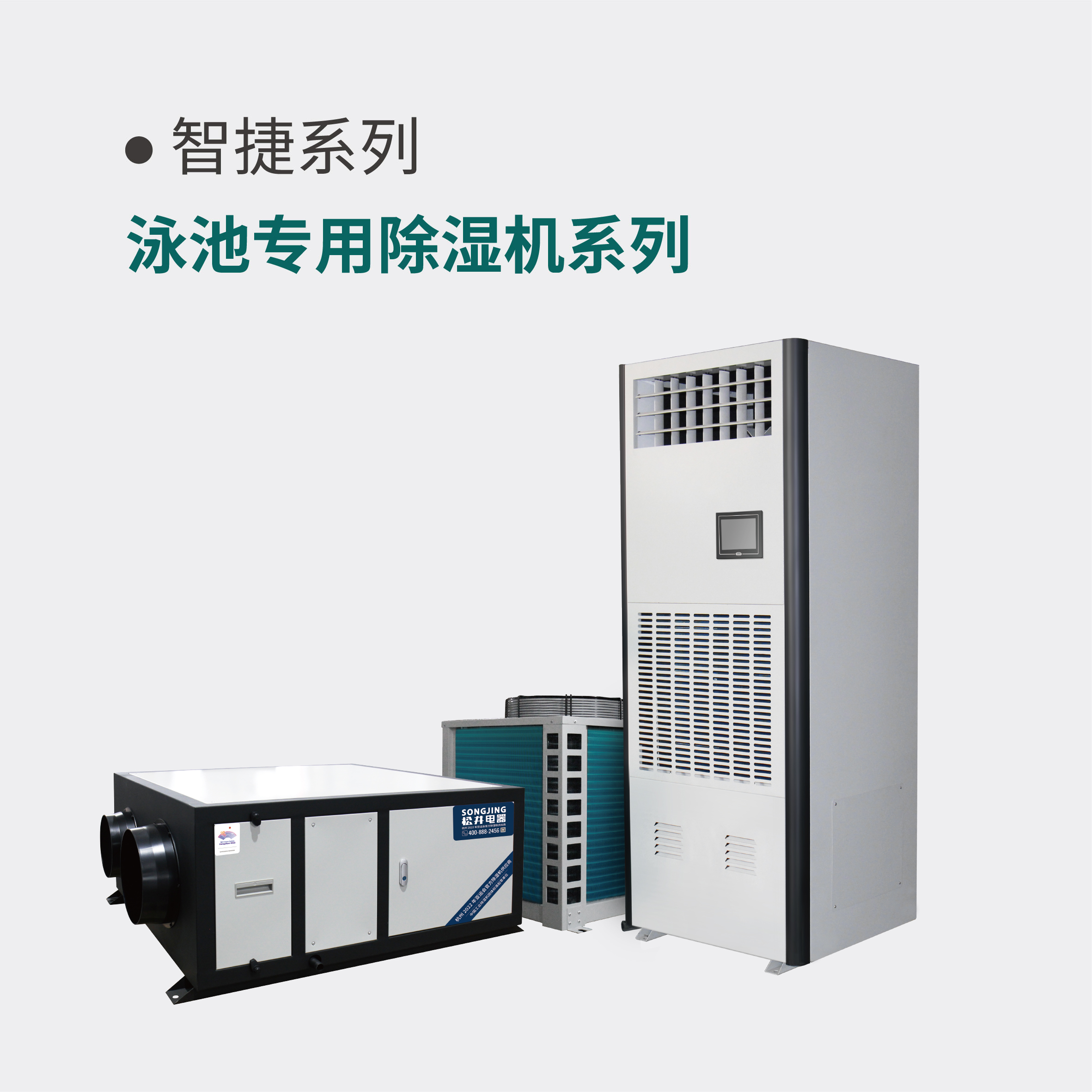 為適配改造項(xiàng)目中機(jī)房面積無法滿足大型除濕機(jī)組使用位置,或泳池規(guī)模較小的情況,松并結(jié)合自身除濕機(jī)產(chǎn)品的技術(shù)底蘊(yùn),為泳池環(huán)境量身定制的具有良好防腐性能的中小型除濕產(chǎn)品??梢造`活選擇機(jī)組形式,管道式、立柜式、吊頂式,一應(yīng)俱全,還可以根據(jù)項(xiàng)目情況選配不同的室外機(jī)形式,增加輔熱功能。